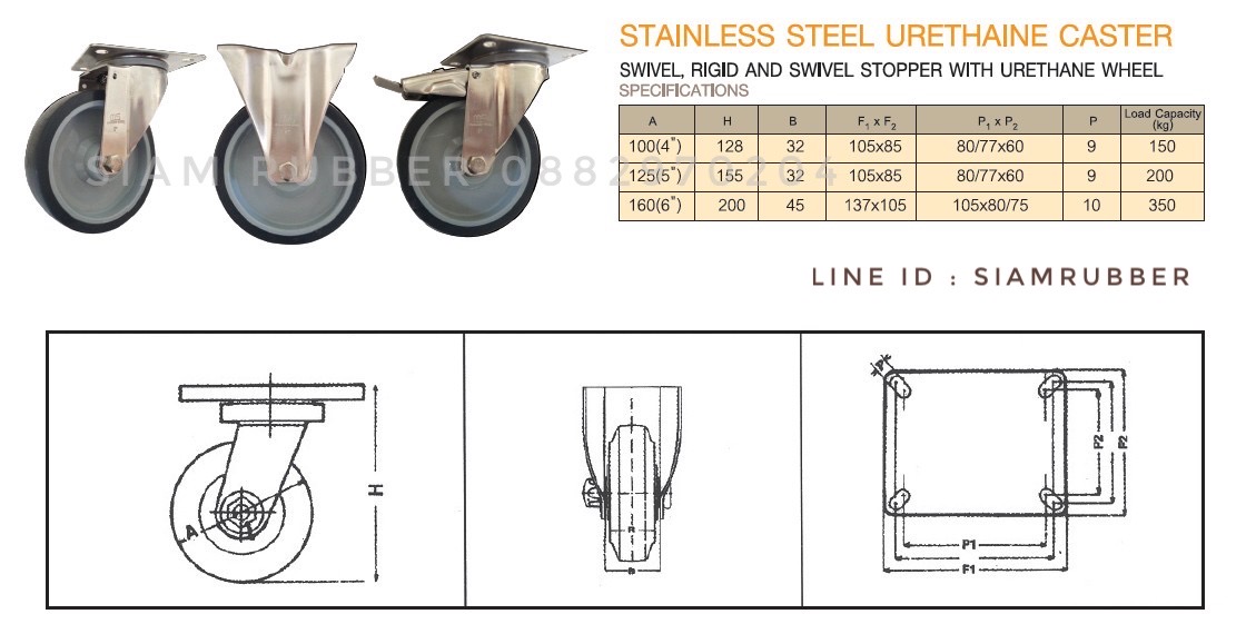 ตารางสเป็คล้อยูรีเทนขาสแตนเลส