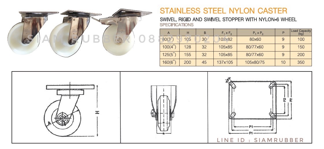 ตารางสเป็คล้อไนล่อนขาสแตนเลส