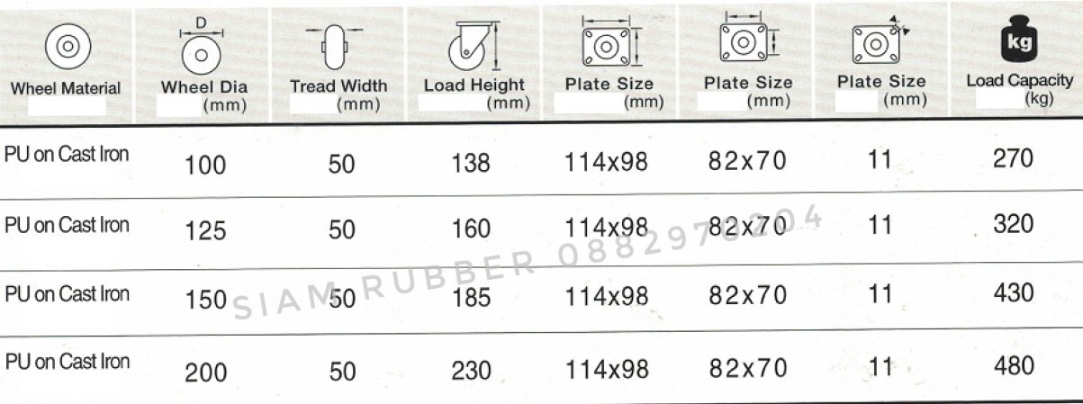 ตารางสเป็คล้อยูรีเทนงานกลาง